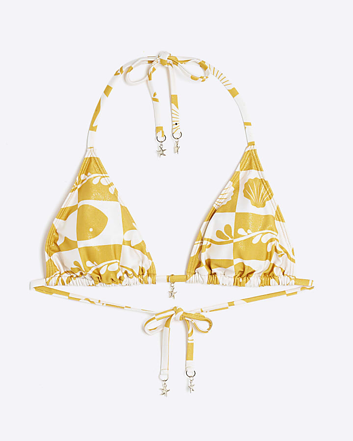 Yellow Triangle Check Print Bikini Top